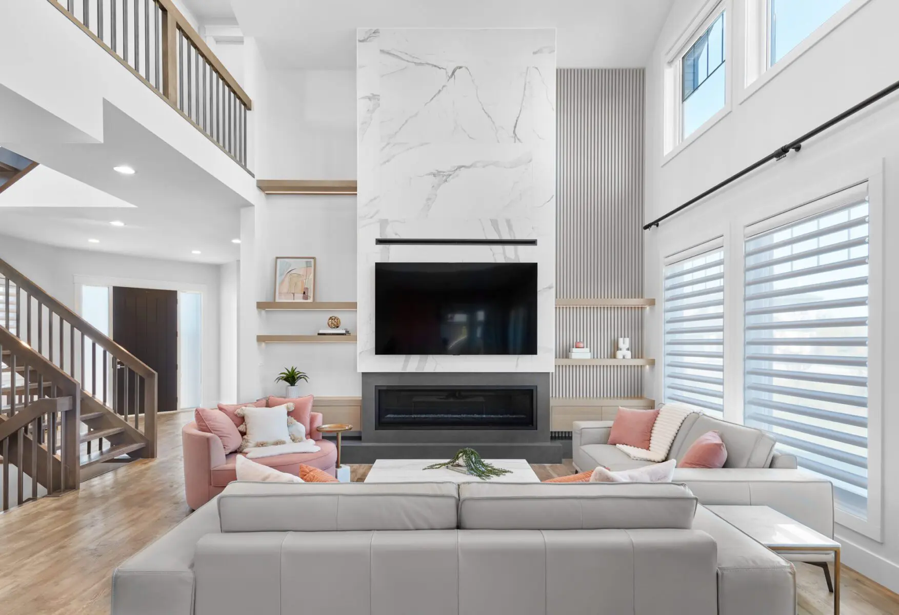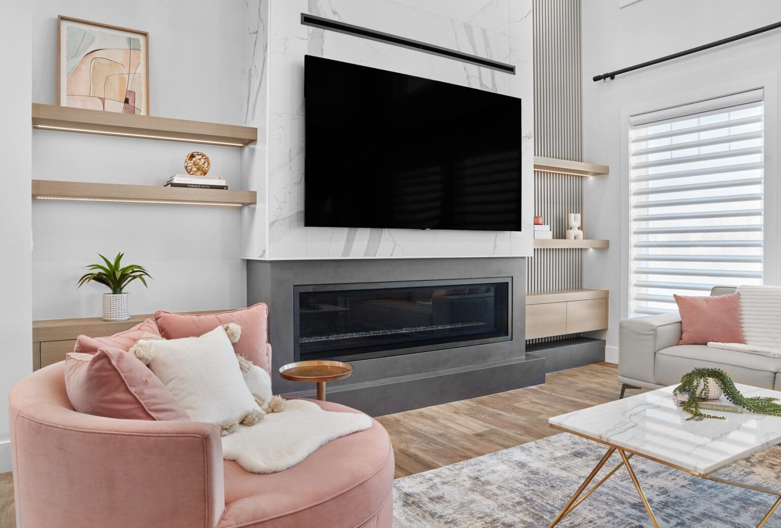 Feature Walls & Fireplaces: Create a stunning focal point, like the fireplace in the award-winning Sturgeon County Living Room Renovation.
